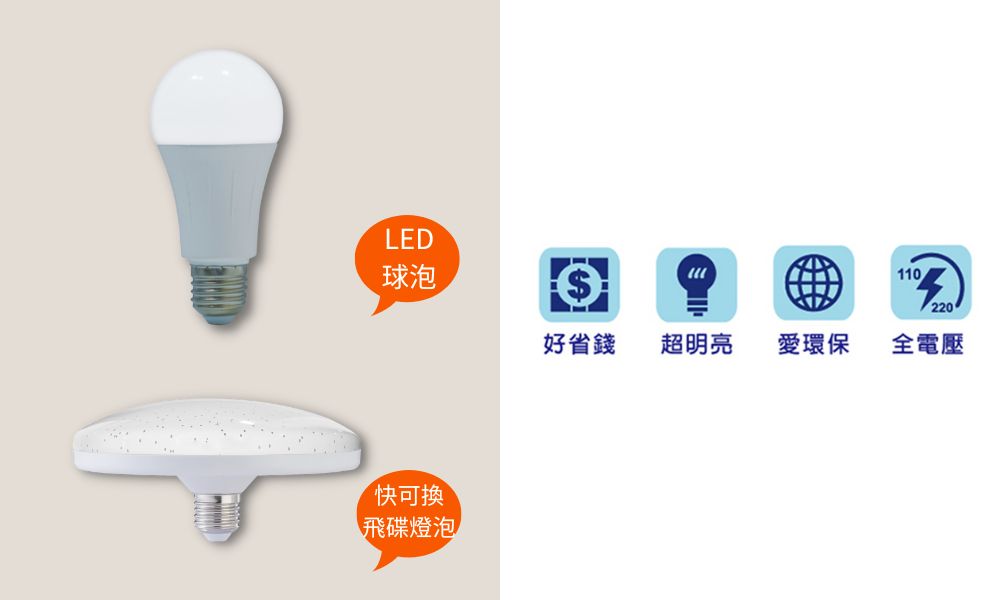 快可換 LED飛碟燈泡→ 點我進入