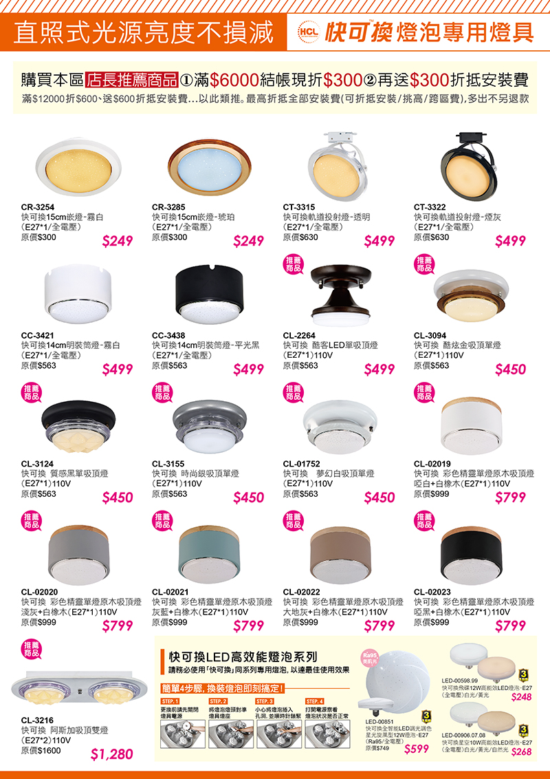 所有崁燈/軌道燈/平板燈/支架燈(商業照明)