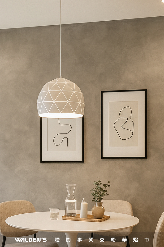 高度與比例同樣重要。一般住宅層高可將燈底離桌面約60–75公分,既不壓迫又能集中光束;若是挑高空間,可用多頭錯落或群聚式搭配,視覺更具戲劇張力。