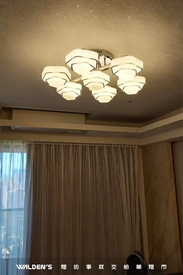 華燈市「半吸頂燈」正是為了這份「不妥協」而生。它介於吸頂與吊燈之間,保留了裝飾的美感,同時透過光學設計,在視覺上讓天花板「長高」了。