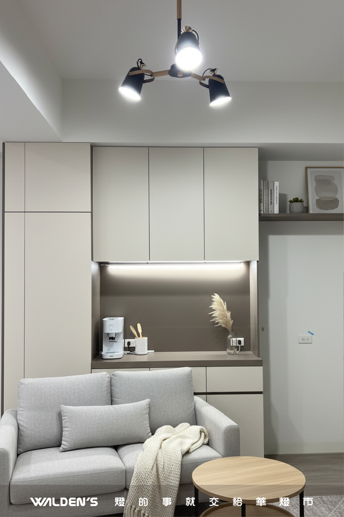 ‧消除死角: 這種混合式照明能消弭陰影暗角,讓視覺感向上延伸,空間瞬間變清爽。