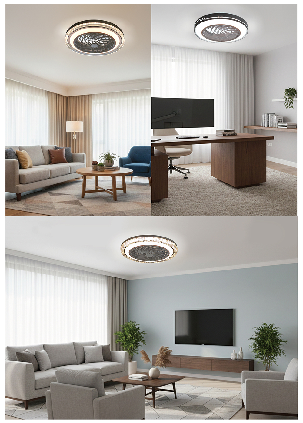 傳統吊扇雖涼爽,但對低樓層或小坪數空間來說容易產生強烈壓迫感。AIRGLOW 風曜系列將「頂級主燈」與「高效循環扇」完美揉合,讓天花板視覺更乾淨。