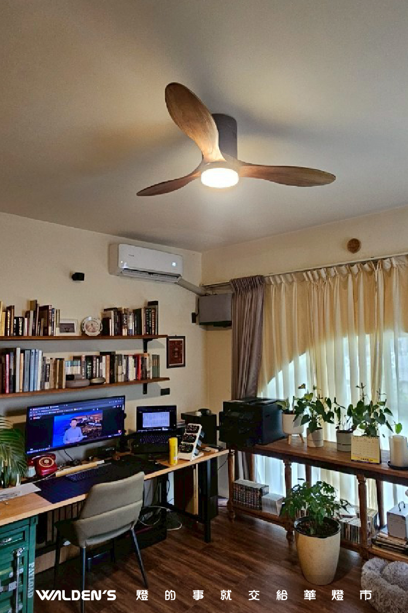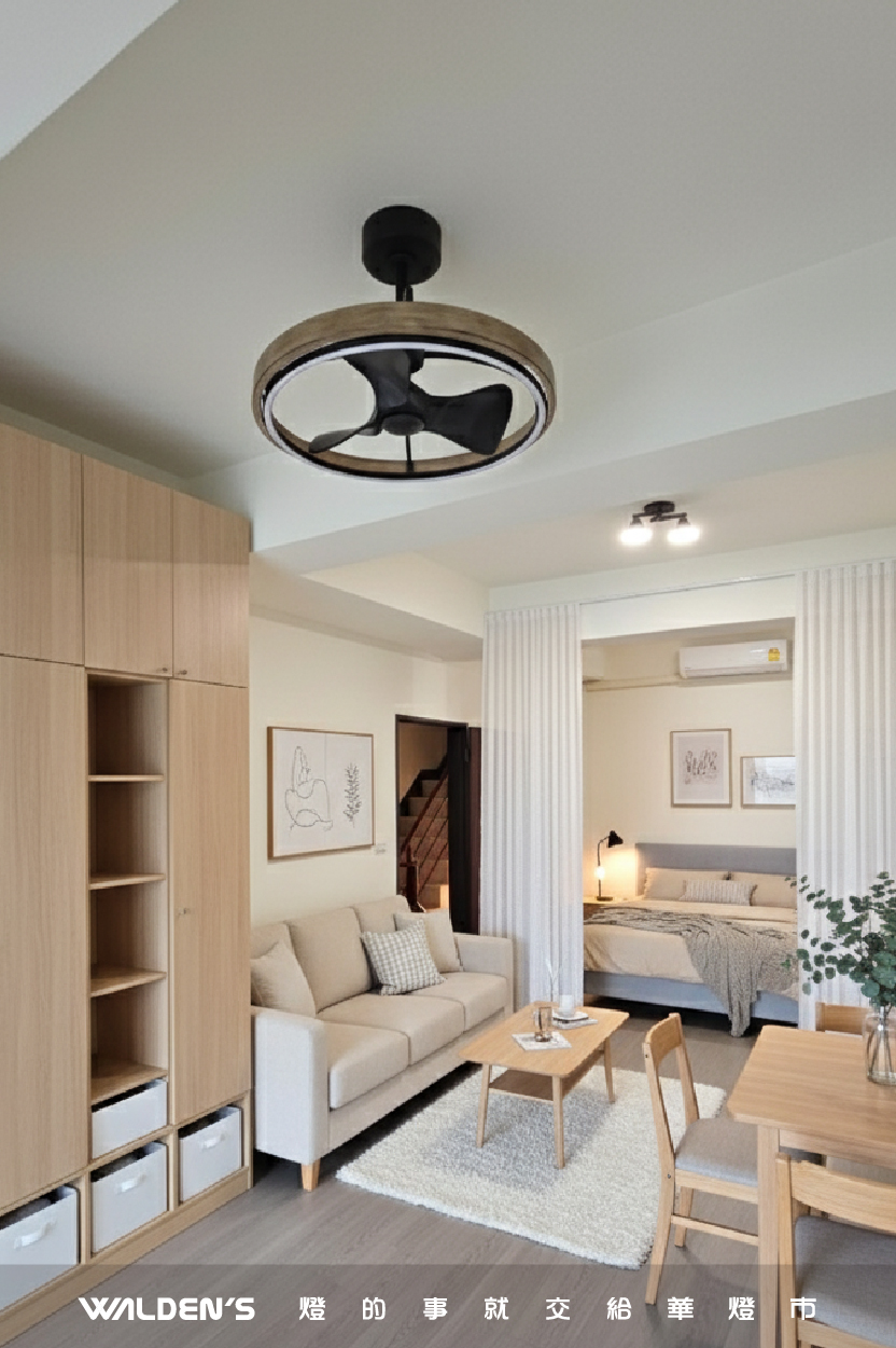 【小空間救星:吸頂燈扇】針對小坪數、低天花板或書房,簡約的吸頂燈扇能釋放視覺壓迫感,一機解決照明與循環需求。