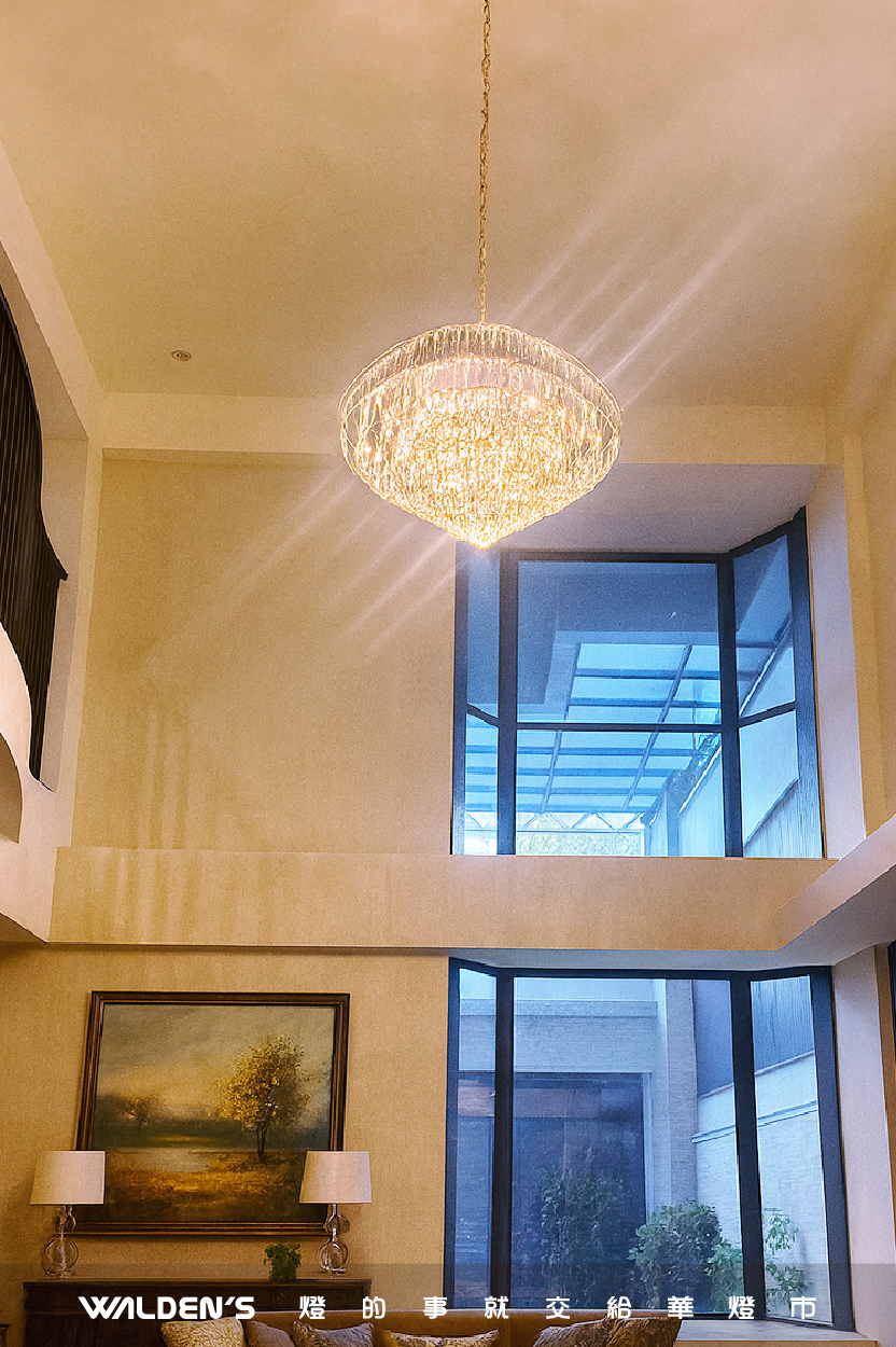 水晶燈之所以迷人,源於其特有的精密切割工藝。高品質水晶能將單純光源轉化為絢麗且豐富的光影層次感。這種光影流動的生命力能瞬間為室內注入高級感,是其他燈具材質難以模擬的視覺饗宴。