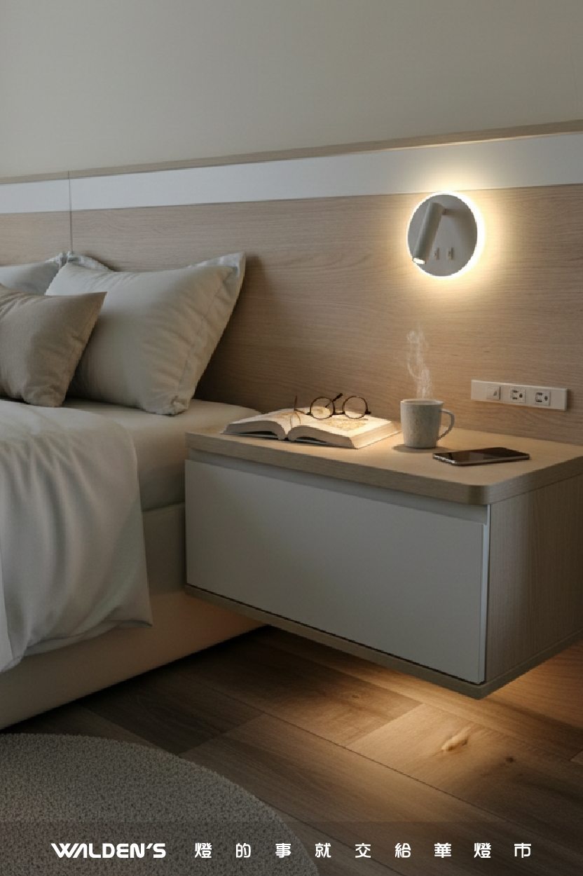 沙發閱讀燈:提供局部光源,打造不干擾家人的專注角落。