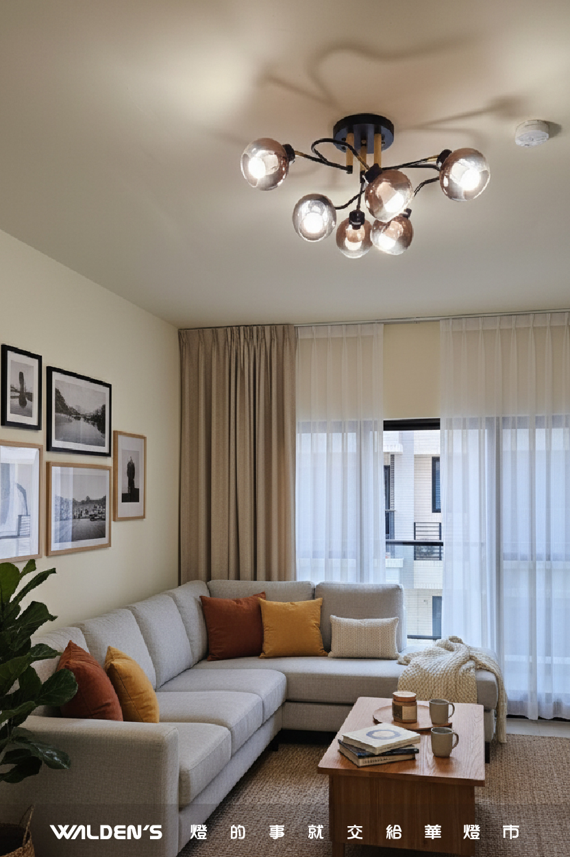 半吸頂燈 的設計高度介於吊燈與全平吸頂燈之間,能有效維持天花板的開闊感,非常適合台灣常見的 2 米 8 至 3 米屋高。透過多燈頭的立體配置,不僅能提供全方位的充足照明,更能營造出細膩且具流動性的 光影層次感,讓小坪數空間也能瞬間展現大空間才有的氣派與格局。