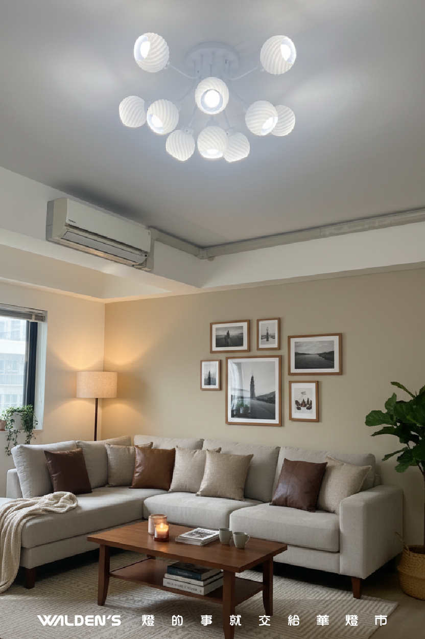 在進行 客廳燈具挑選 時,許多屋主常面臨兩難:「裝吊燈擔心高度壓迫,裝一般吸頂燈又怕視覺單調」。針對這種常見的佈置痛點,華燈市推薦您最佳的平衡解決方案 —— 「半吸頂燈」。它巧妙保留了天花板的視覺高度,同時擁有吊燈般的造型張力,是現代 小宅客廳主燈推薦 的首選方案。