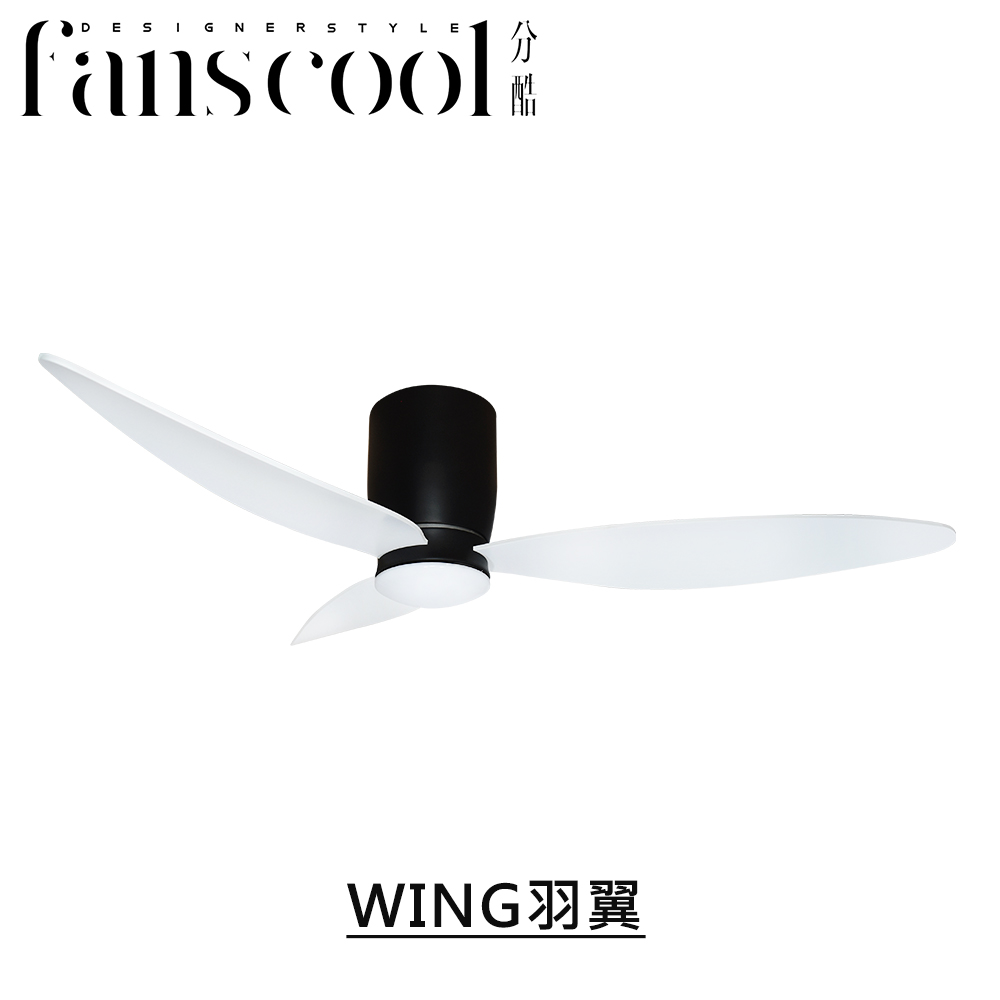 分酷 fanscool43吋WING羽翼DC三葉空調吸頂扇_附可調光燈具(平光黑+平光白葉片)產品編號 CD9615