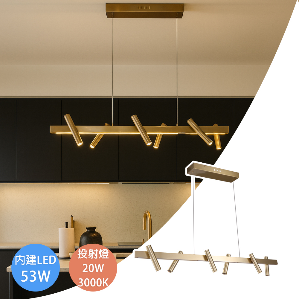 投射光廊LED 53W+投射燈20W單色溫長型吊燈,主照明到重點投射,一燈搞定