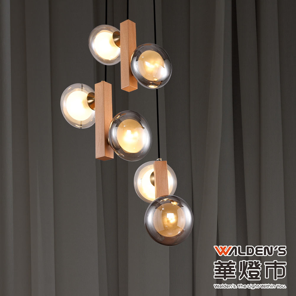 浮動仿木紋玻璃六燈吊燈——點亮生活的藝術品味