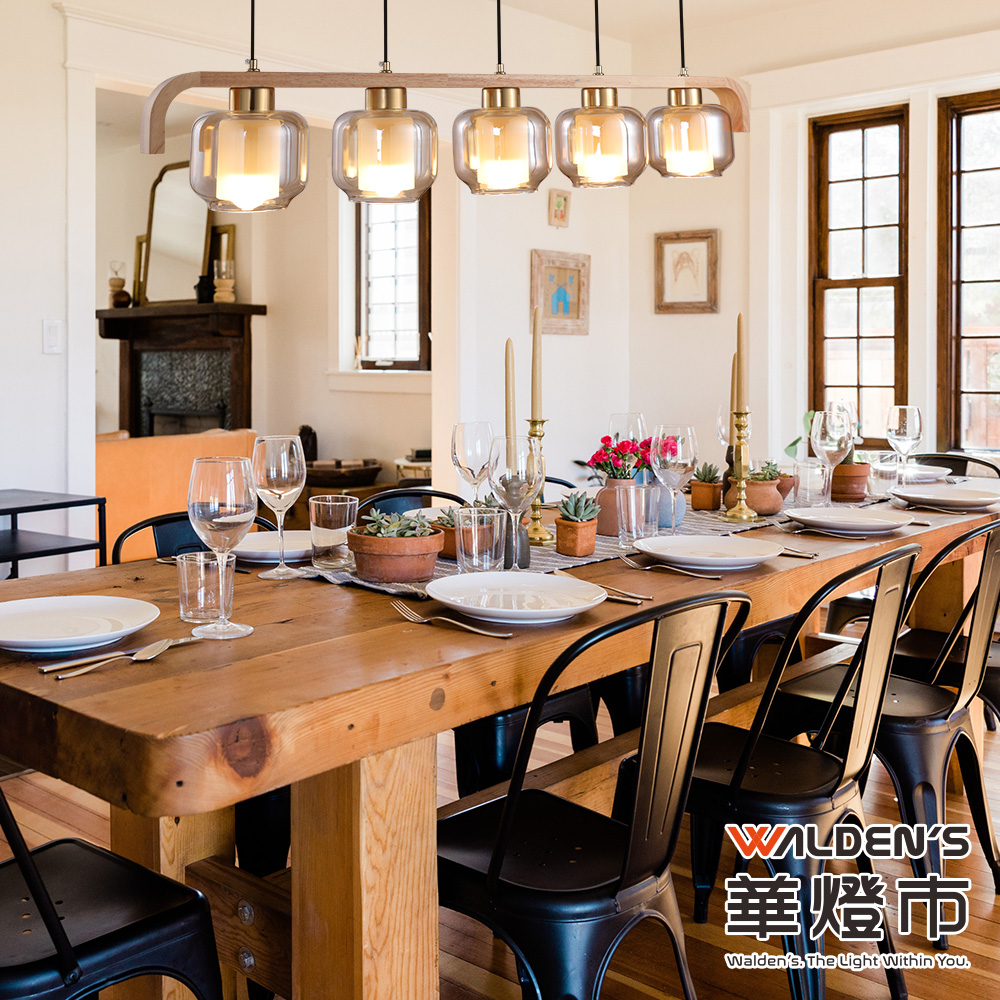 木橋原木玻璃五燈吊燈—適用4-5坪,打造理想餐吊燈