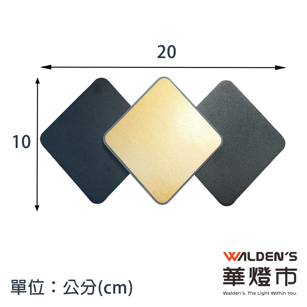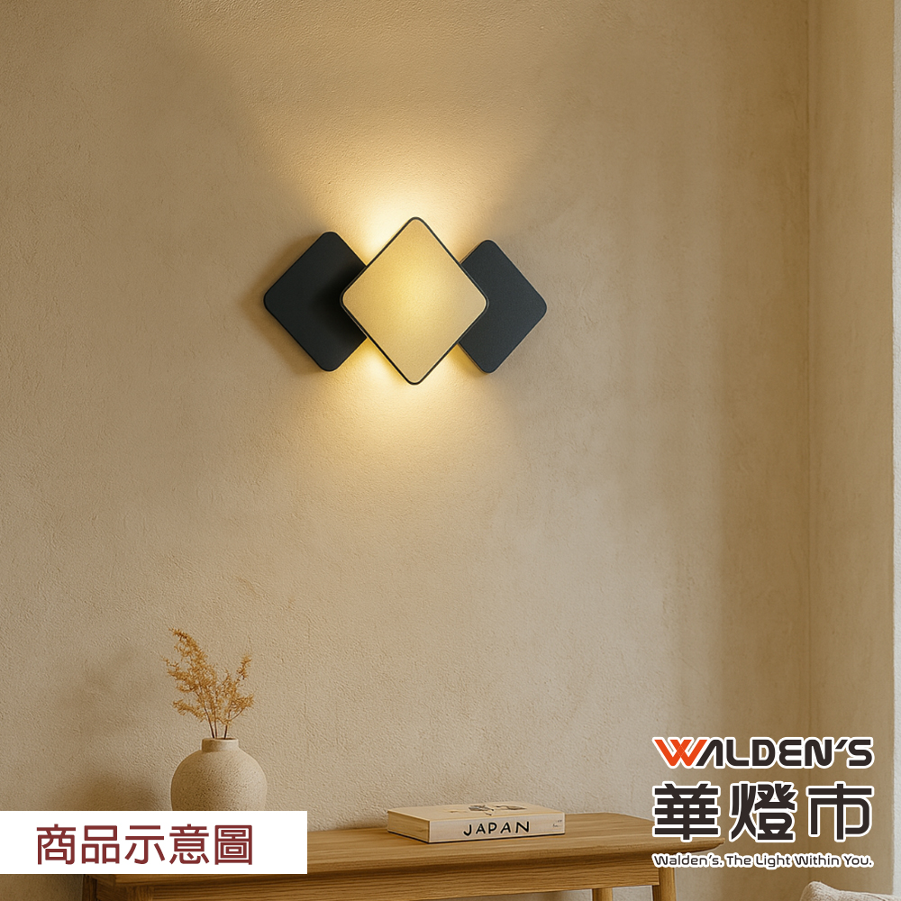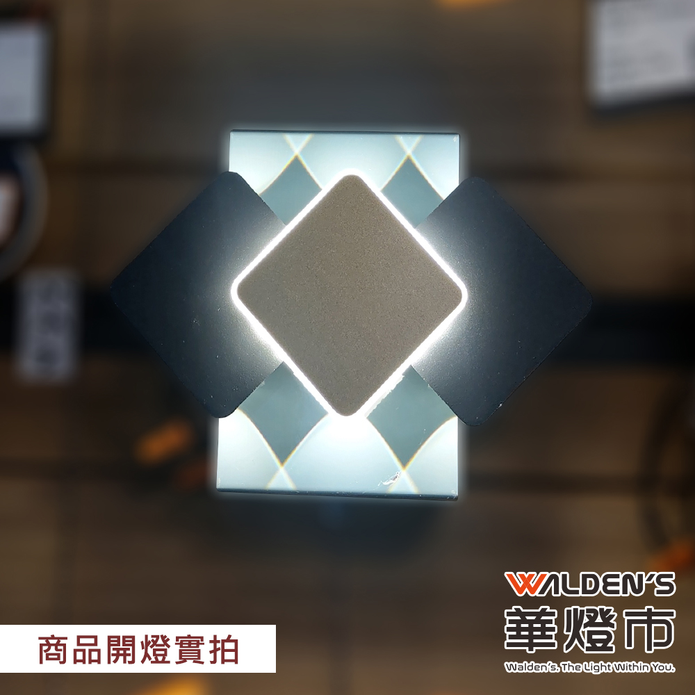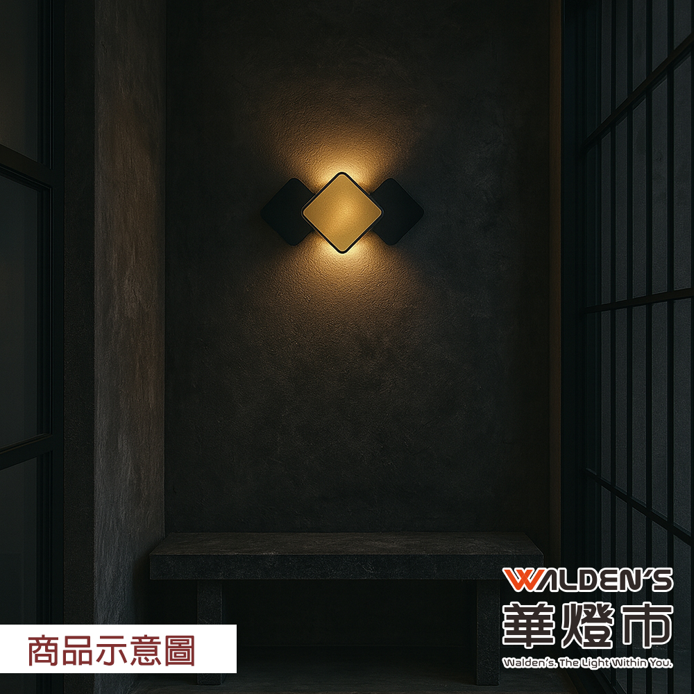 三菱線LED 10W自然光+投射COB黃光壁燈,黑金菱形設計,提升空間質感