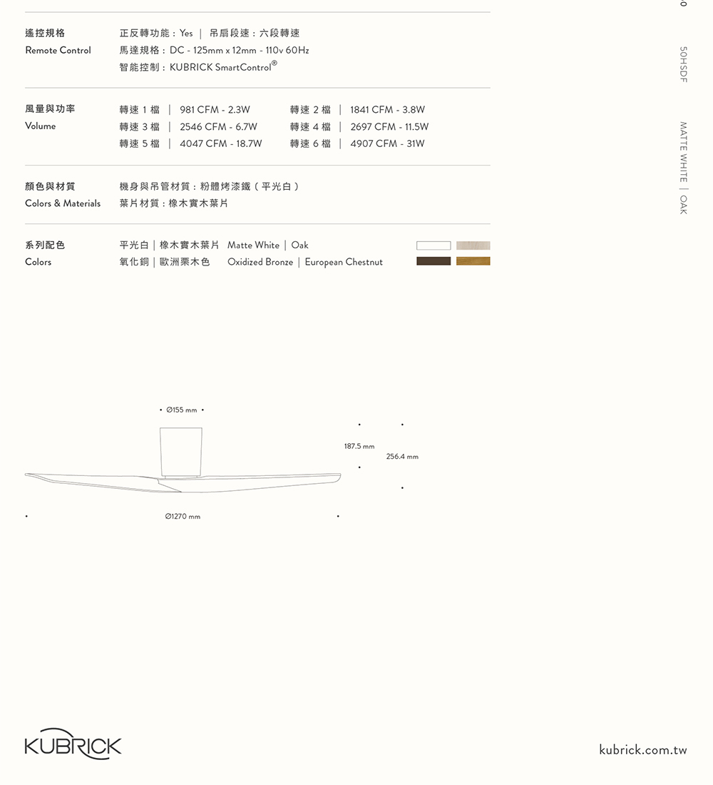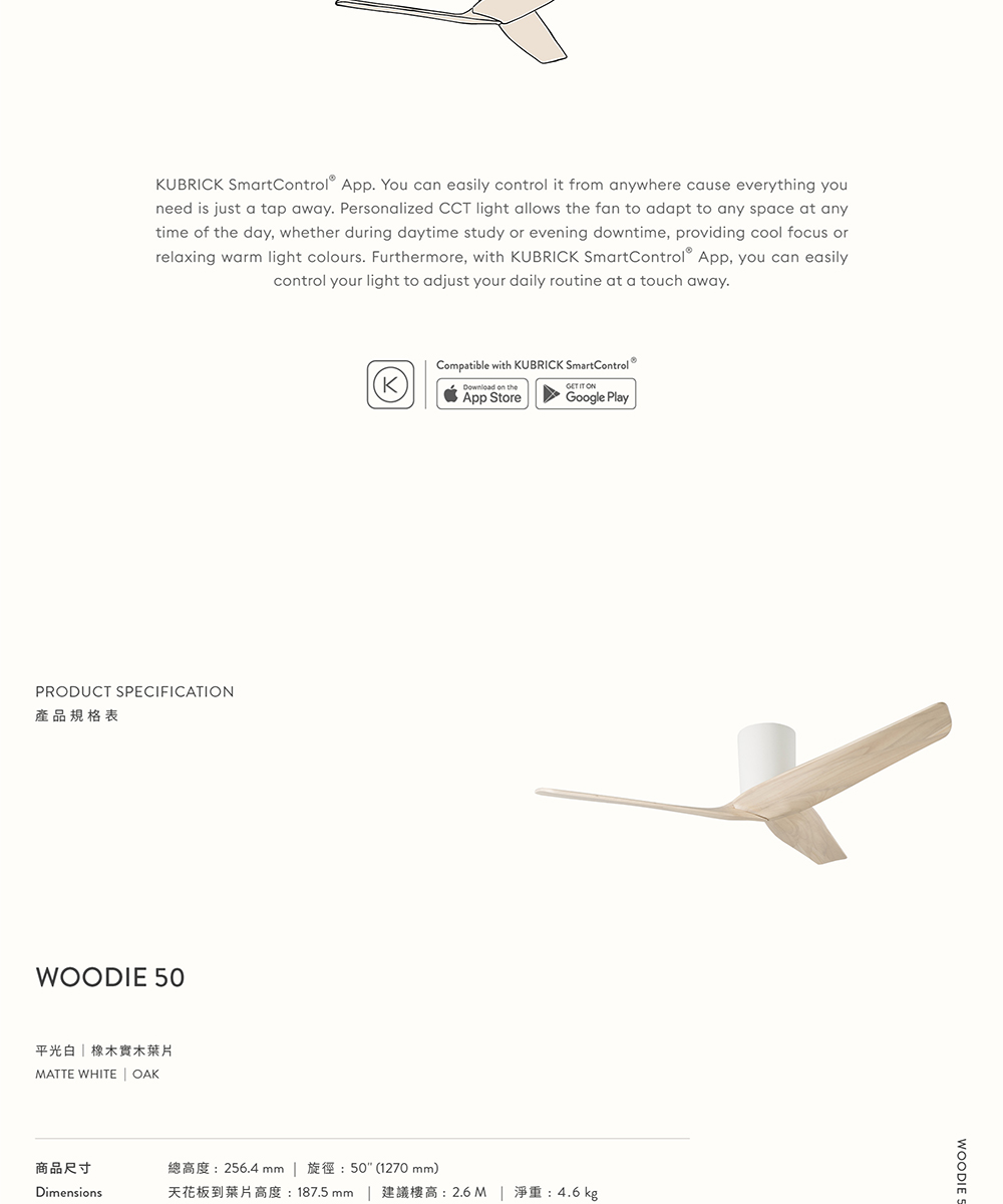 酷必客 KUBRICK50吋 WOODIE DC遙控吸頂扇-白色/原木產品編號 CD-01858