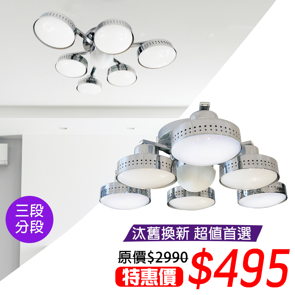 華燈市超值6+1燈半吸頂燈 三角設計・分段控制