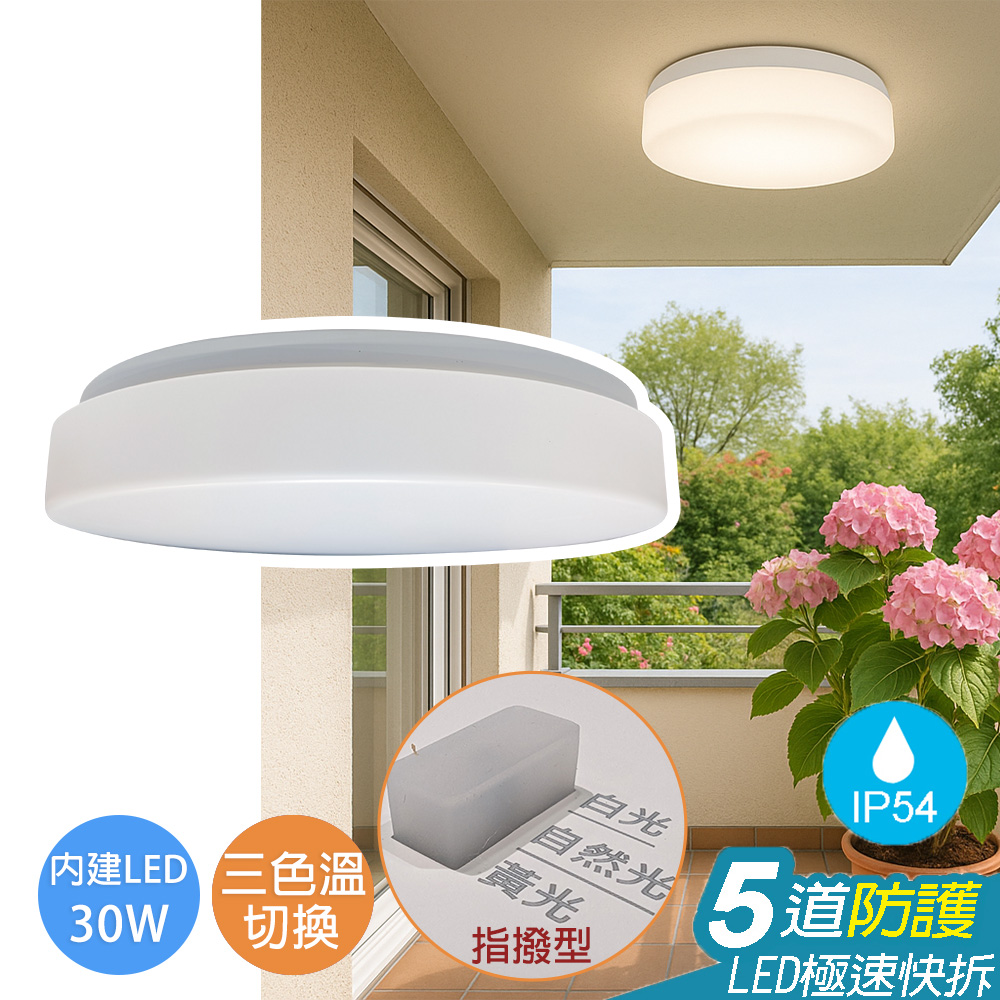 日式LED30W快拆式吸頂燈|指撥型三色溫切換、防水防潮