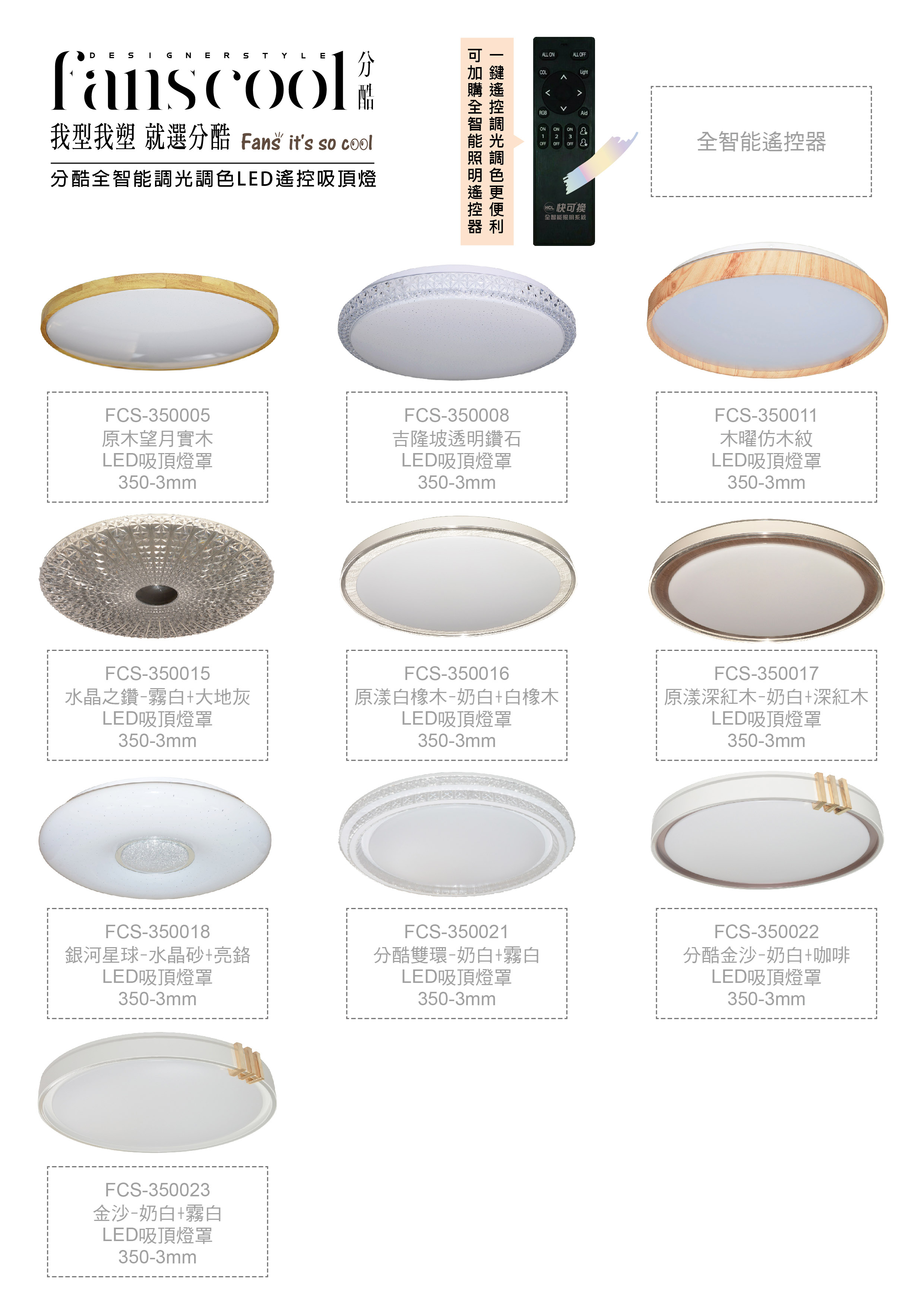 分酷 fanscoolAI全智能45W調光調色LED附遙控器 吸頂燈座 防潮防蚊 全電壓 (350mm-3)產品編號 CL-02693