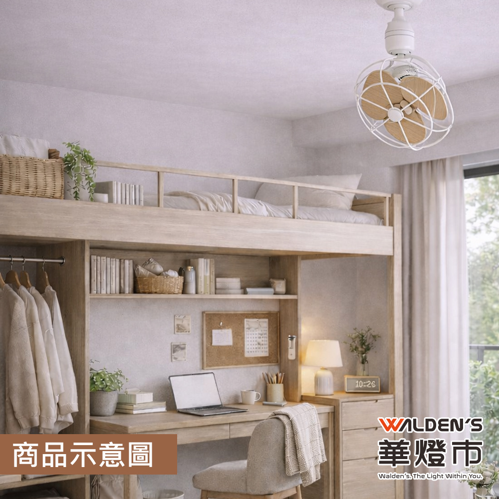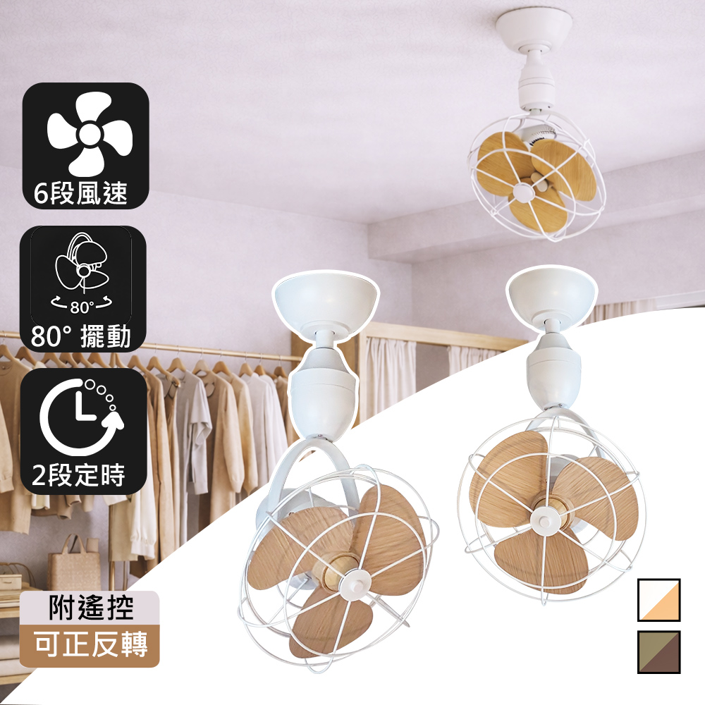 MINI 12吋遙控擺頭吊扇|啞白×淺木紋