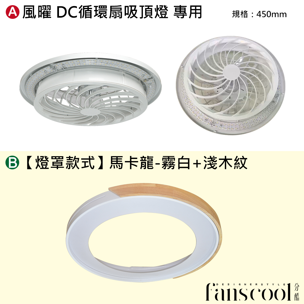 分酷馬卡龍風扇燈專用燈罩|450mm 霧白+淺木紋|為循環風扇燈打造輕奢光環
