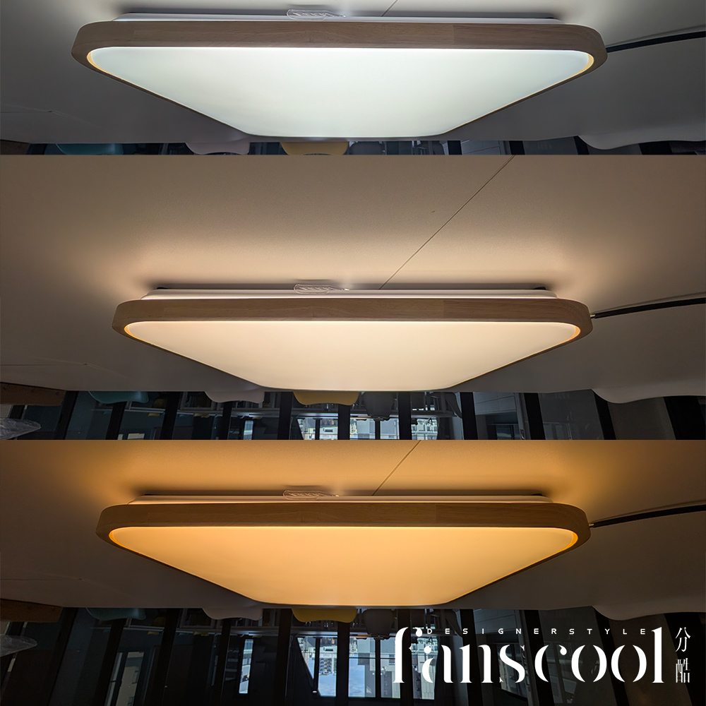 請搭配「分酷方型 56W 三色溫壁切變段吸頂燈」,壁切即可切換白光/自然光/黃光,實用性更高。