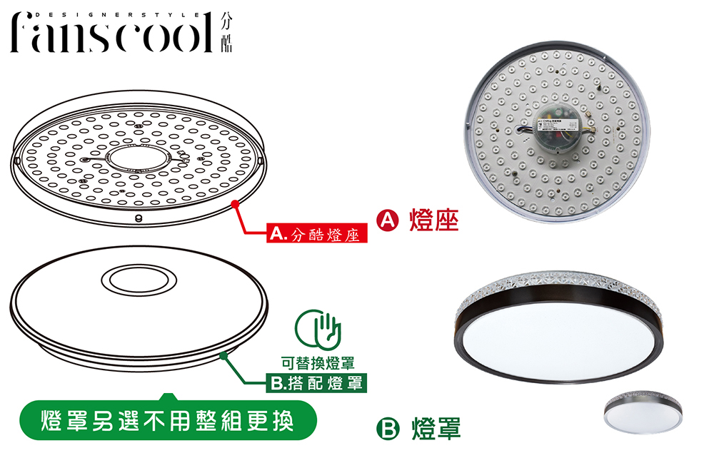 56W大瓦數提供充足亮度,適用約3~5坪空間,是小家庭、套房、書房、臥室的實用照明選擇。