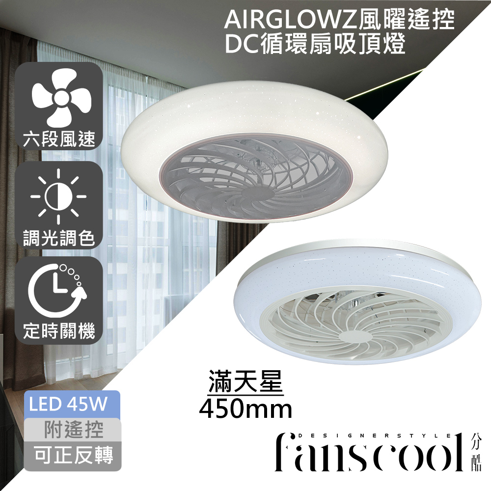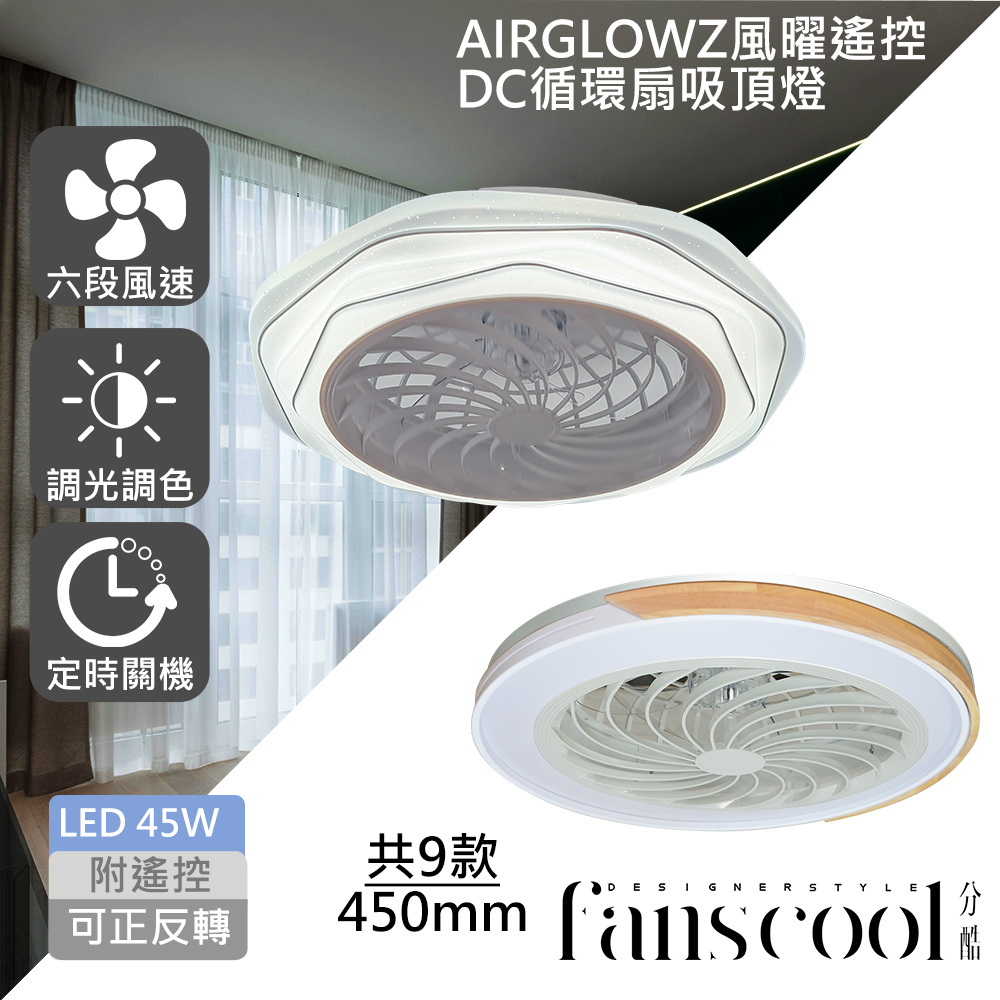 分酷 fanscool 照明循環2合1AIRGLOW 風曜遙控 DC循環扇+45W吸頂燈(共9款)產品編號 CD01896ALL