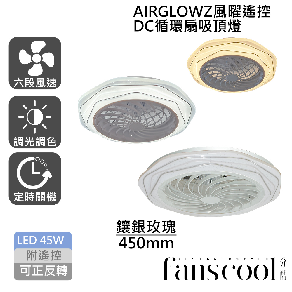 分酷 fanscool 照明循環2合1AIRGLOW 風曜遙控 DC循環扇+45W吸頂燈-鑲銀玫瑰產品編號 CD01896FCS450067