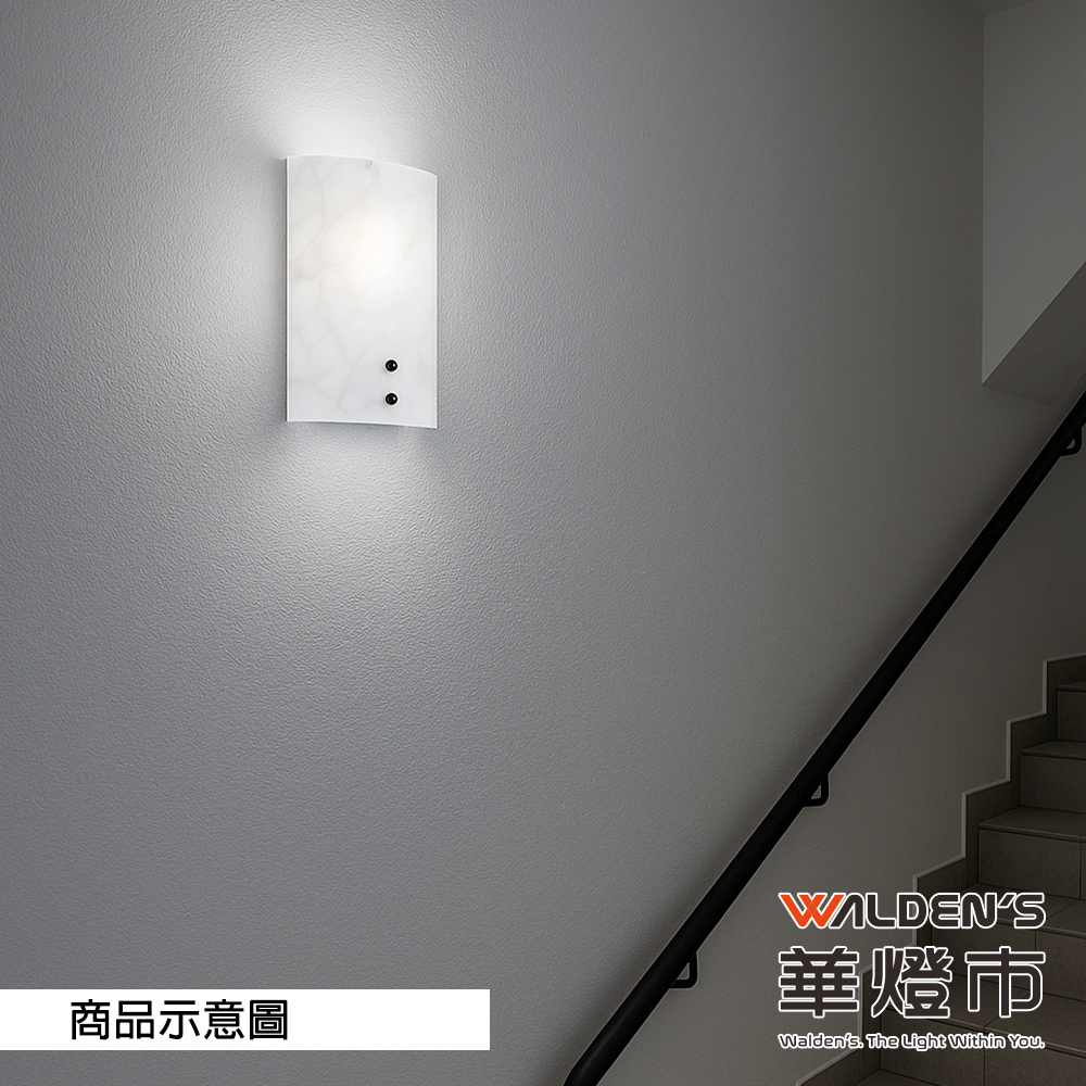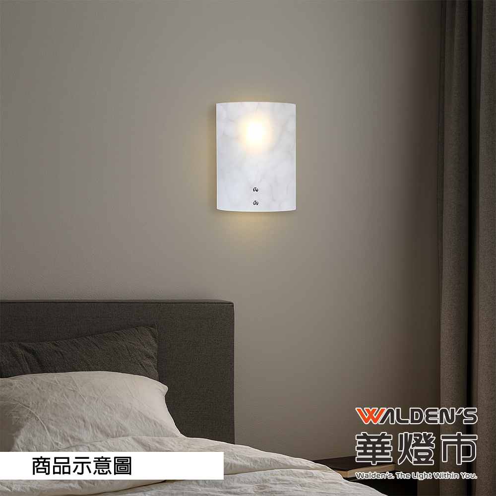 仿雲石紋單壁燈以細膩的雲石紋玻璃燈罩為設計核心,呈現自然流動的紋理層次,