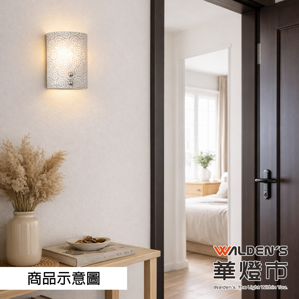 禪風意境單壁燈以螺旋雲紋玻璃燈罩為設計主軸,